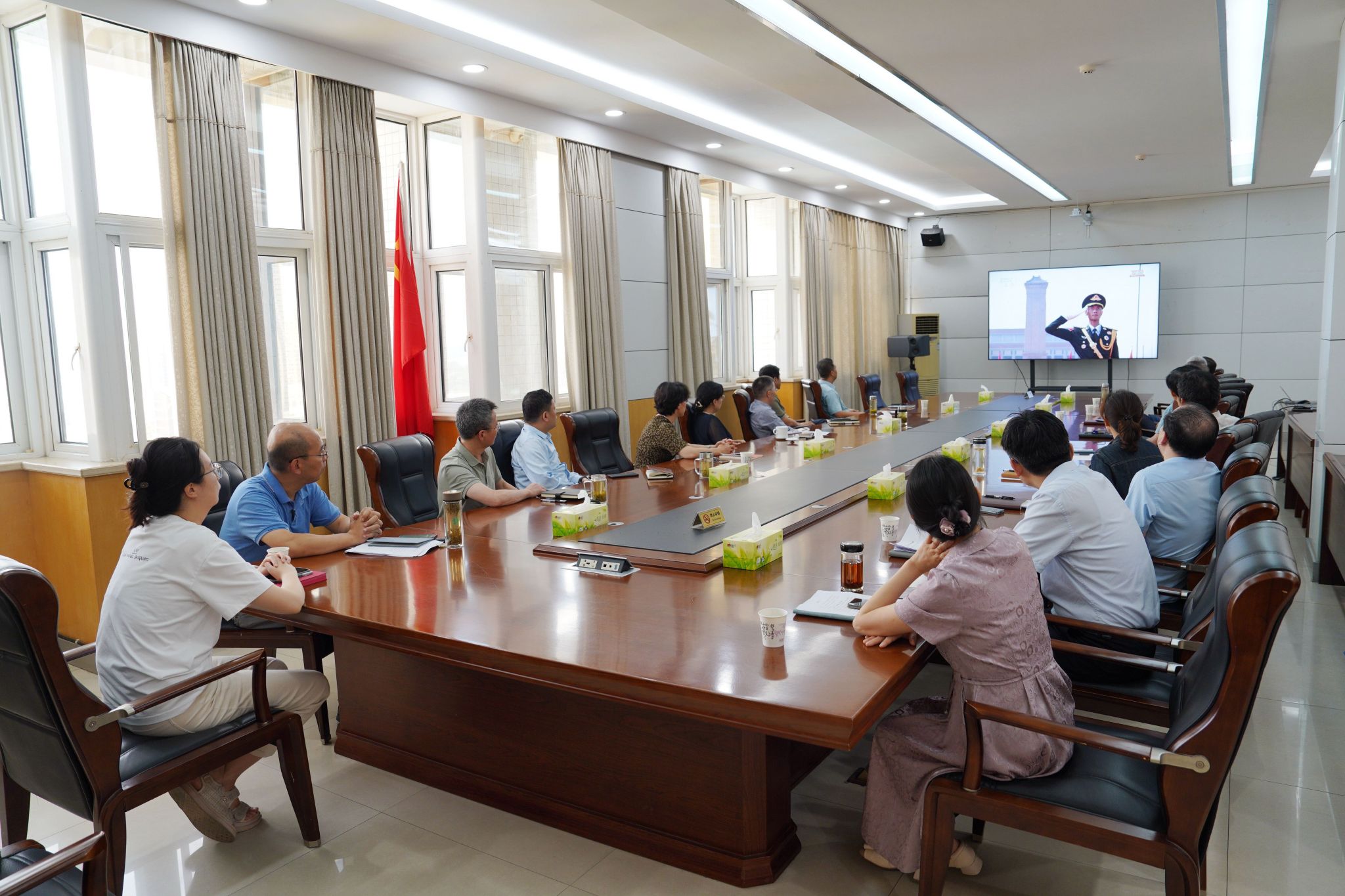 八十载峥嵘岁月,八十载铁血荣光。2025年9月3日上午9时,纪念中国人民抗日战争暨世界反法西斯战争胜利80周年大会在北京天安门广场隆重举行,中共中央总书记、国家主席、中央军委主席习近平发表重要讲话。校领导夏劲松、姚应水、贾贤燕、王保中、韩永升、田磊、余结根在党委会议室收看大会盛况。同时,学校广大师生医护员工也通过电视、网络直播等方式收听收看大会盛况,同上一堂生动珍贵的思想政治教育课和爱国主义教育课,并展开热议。