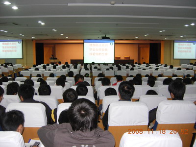 11月18日晚,医学三系在图书馆三楼学术报告厅举行安全教育大会,系部邀请了高教园区派出所陶麒麟所长主讲,医学三系党总支书记余海燕主任、党总支副书记唐传莉副主任�08级辅导员贾玲老师�杨丹老师�保卫处潘家宝科长�医学三系团总支学生会全体同学及08级新生300多人出席了会议,大会由团总支书记姚成元老师主持。