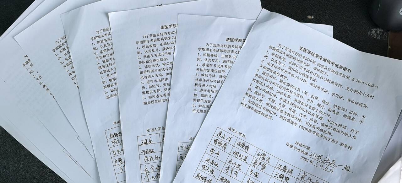 为进一步加强学风建设,严肃考试纪律,增强诚信意识,近期,法医学院开展以“诚信考试 从我做起”为主题的考风考纪教育活动,旨在营造风清气正的考试环境和积极向上的良好学风。
