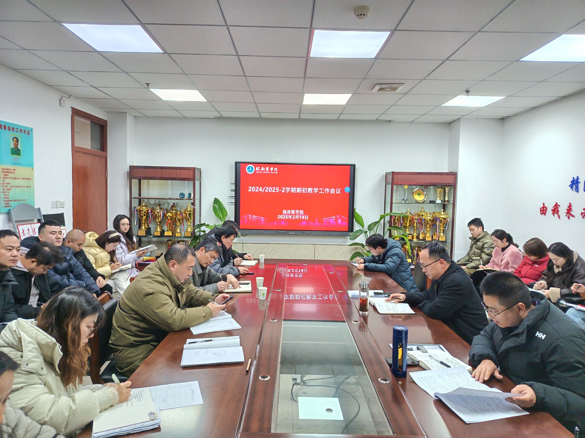 开篇布局,凝心聚力。2月14日,学院召开新学期期初教学工作会议。副院长陈祥攀对第一周第一天第一课准备工作、期初补考工作、期初教学检查、学生选课、教材发放、教学(实习)医院管理、实验实训中心教学准备等进行部署。党委书记方基勇强调,2025年是“十四五”规划收官之年,希望全体教职工以饱满的风貌和昂扬的斗志全力做好教学工作,以实际行动落实全国教育大会精神和教育强国建设规划纲要要求。