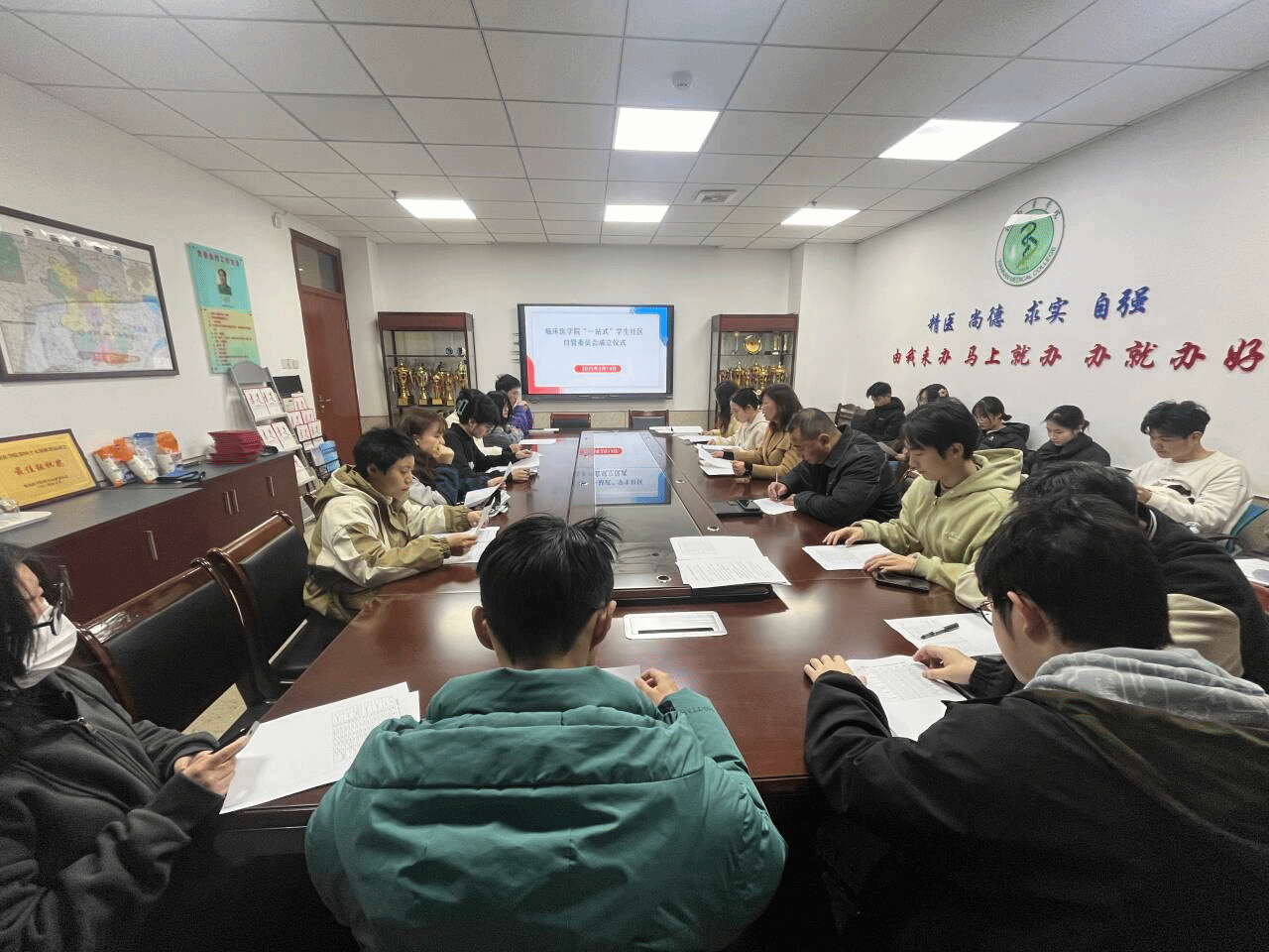 为深化学生社区自治管理,构建“三全育人”新格局,3月14日,临床医学院“一站式”学生社区举行自管委员会成立仪式,“一站式”学生社区楼长、副楼长、自管委员会学生干部和层长参加会议。