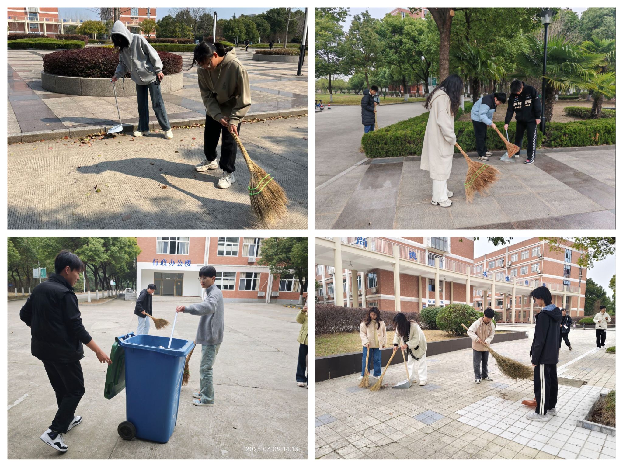 校园焕新展新颜劳动育人树新风3月9日和16日,学院学生会开展“美丽校园我先行”环境卫生提升行动。60余名志愿者分组对南区教学楼周边绿化带、马路等区域进行深度清理,重点整治卫生死角30余处,分类回收可循环垃圾30公斤,活动还融入环保知识教育环节,将劳动教育与生态文明理念有机融合。同时,在微信公众号等网络平台,学院团委以“3.9保护母亲河日”“3.12植树节”等时间节点为契机开展生态文明宣传教育,倡导绿色生活方式,提高学生的环保意识。