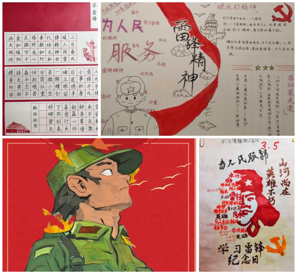 “宣”有厚度,注重氛围营造,突出长效浸润。3月5日至20日,志愿队面向年级同学举办“雷锋精神放光芒” 主题作品征集活动,通过书法、绘画、数字海报、手工拼豆等载体,实现“雷锋精神”的跨媒介传承,收到同学们的踊跃投稿。一张张构思巧妙的海报,一幅幅流畅优美的书法,这些承载创意的作品,既是艺术化的精神丰碑,更是薪火相传的青春誓言。