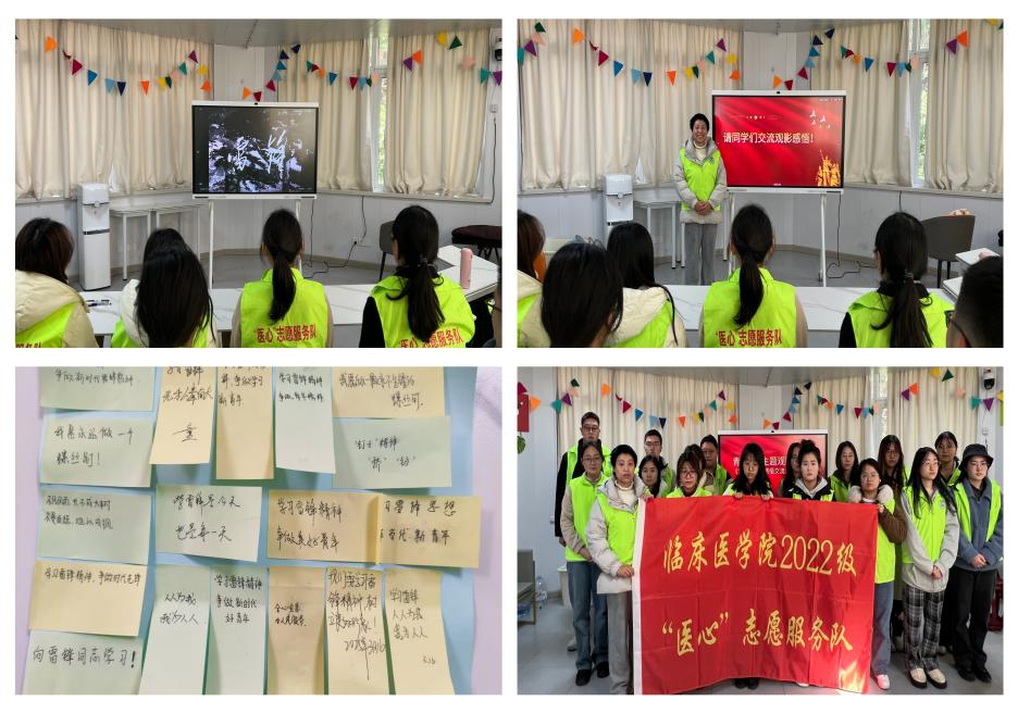 “学”有宽度,注重思想领航,突出理论原味。3月9日、16日,志愿队在临床医学院“一站式”学生社区分批次开展主题观影活动。在光影交织的红色课堂中,志愿者们集体观看经典影片《雷锋》,诵读重温《雷锋日记》经典篇章。同时,由青年党员带领开展沉浸式学习、互动式研讨,参与者们将学习感悟化作“学雷锋”标语,用“医者仁心映照雷锋本色,做永不生锈的医学螺丝钉”等宣言深入探寻 “雷锋精神”的新时代内涵。
