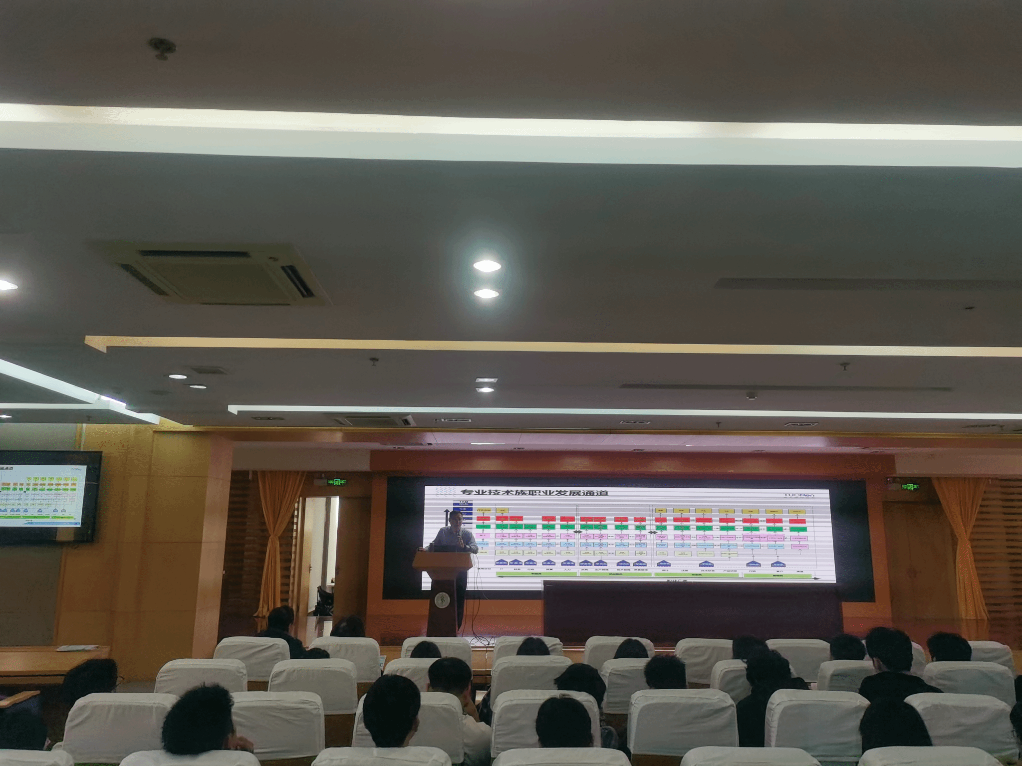 宣讲会上,赵劲松对驼人医疗器械集团有限公司来校招聘表示热烈欢迎,简要介绍了该公司基本情况。驼人医疗器械集团有限公司人力资源管理中心魏世星经理详细介绍了企业的发展历程、业务范围、人才培养体系以及未来的发展规划,并重点对此次招聘岗位、职业发展空间、学习培训体系、相关福利待遇等方面进行介绍。