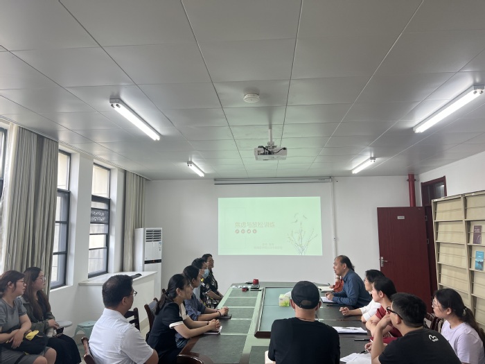 李秀教授以“焦虑与放松训练”为题,从焦虑症的概述开题,再具体到放松训练,并以腹式呼吸为主线讲解呼吸方式,详细介绍腹式呼吸的正确方法,并带领大家尝试腹式呼吸和冥想训练。她既富有学术性又有明显实用价值的讲解,引起参会师生热烈讨论,尤其是放松训练的实践环节,给在场师生进行科研创新和后续教学及日常生活以新的启发与感触。