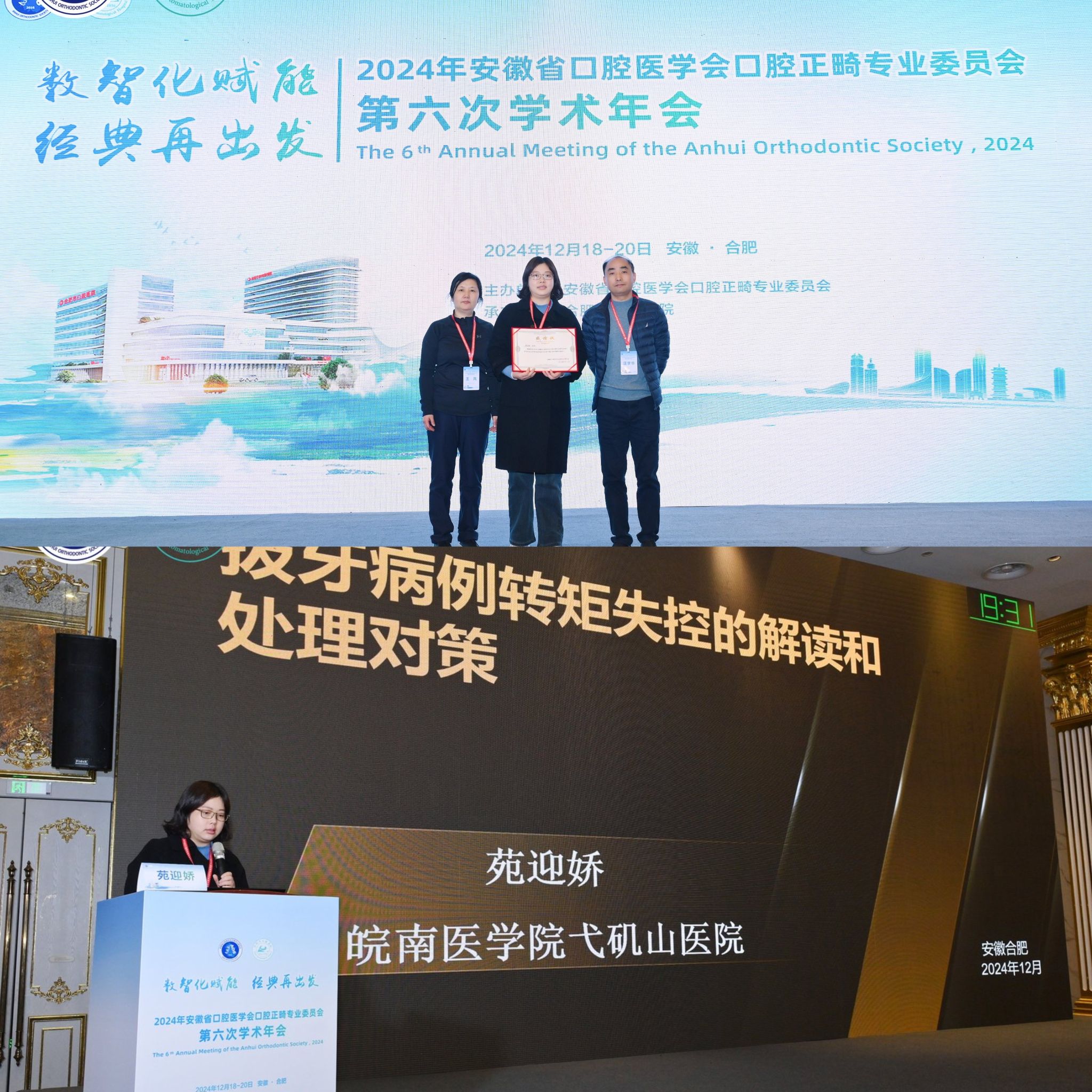 12月18日至20日,安徽省口腔医学会正畸专业委员会第六次学术年会在合肥召开,来自全国各地的口腔医学专家、正畸医生、研究生以及企业代表齐聚一堂,共同探讨口腔正畸学领域的最新技术和未来发展方向。我校口腔医学院周嵩琳、苑迎娇和严季丰三位老师带领学生参加会议。